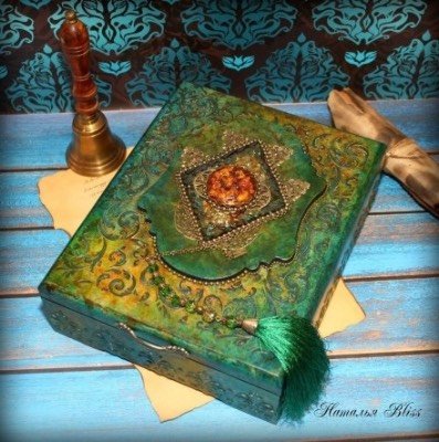 На мастер-классе мы сделаем потрясающую шкатулку с очень красивым фоном, научимся работать со стеклянной мозаикой (изготовление, фиксация на изделии, тонировка стекла) поработаем с объемными узорами, из тонировкой и правильной лакировкой.