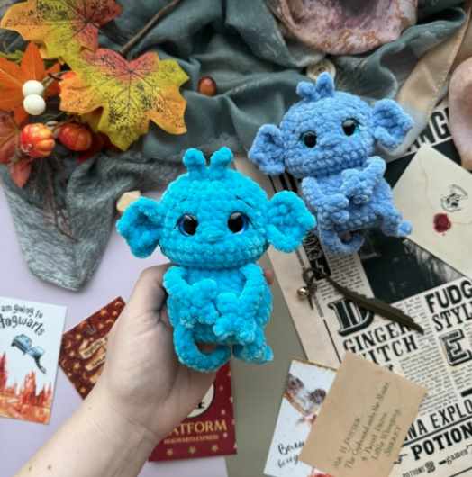 Необходимые материалы: - 35 г пряжи WOLANS Bunny Baby (120 м /100 г) основной цвет (синий); - немного пряжи дополнительного цвета (белый); - крючок 3 мм; - глаза 14 мм; - наполнитель; - игла, прочная нить для утяжки; - ножницы; - маркер для петель; - игла с широким ушком для закрытия деталей; - черная нить для оформления, у меня ирис. Размер игрушки 10 см.