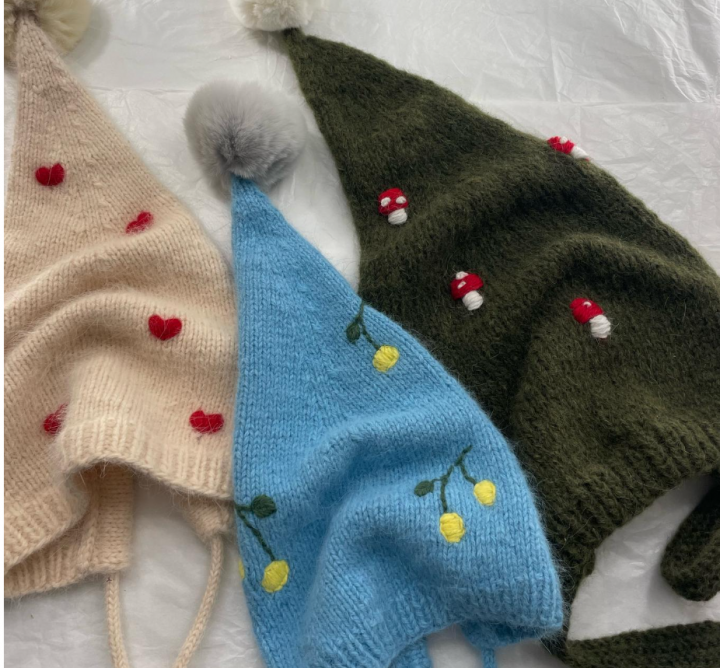 Шапочка - колпачок отлично подойдет маленьким модницам и модникам. Отличный вариант для весны и осени. Украсить шапочку можно вышивкой сердечек, мухоморов или вишнями.