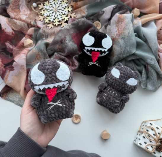 Необходимые материалы: - 40 г пряжи WOLANS Bunny Baby (120 м /100 г) основной цвет черный; - не много красной пряжи YarnArt jeans (для языка); - крючок 3 мм для игрушки и 2 мм; - наполнитель; - игла, прочная нить для утяжки; - ножницы; - маркер для петель; - игла с широким ушком для закрытия деталей; - фетр белый 1 мм и клей момент; - черная нить для оформления, у меня ирис. Рост игрушки 10 см.