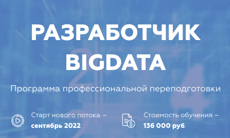 Программа профессиональной переподготовки Разработчик Big Data соответствует запросам рынка. Мы обновляем материалы и развиваемся вместе с индустрией.