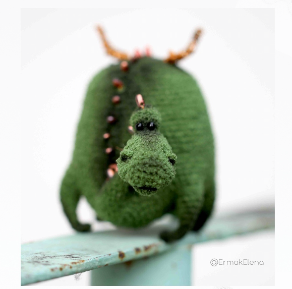 Рост готового дракоши 7-9 см в зависимости от пряжи. Дракошу можно использовать как игольницу или мини-шкатулочку. Голова у Тоши поворотная, на проволочном каркасе.